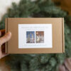 In het setje zitten 8 kaarten, 4 van elk ontwerp + kraft enveloppen. Verpakt in een doosje.